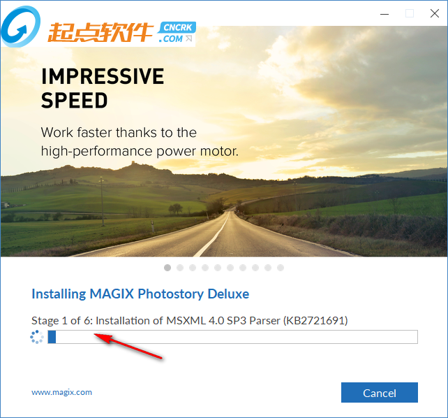 1、首先你需要在起點(diǎn)軟件園下載MAGIX Photostory Deluxe2019安裝包,點(diǎn)擊啟動安裝,等待軟件加載安裝的數(shù)據(jù)