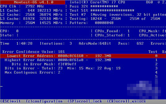 可以輕易的找出BIOS記憶體測(cè)試所找不出的錯(cuò)誤。可以在檢測(cè)畫面上看到目前的進(jìn)度。
