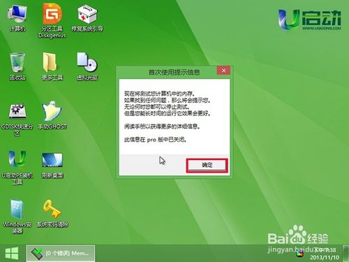 在彈出的首次使用提示信息窗口中我們能夠看到建議長(zhǎng)時(shí)間運(yùn)行,檢測(cè)結(jié)果會(huì)更好的提示,點(diǎn)擊“確定”按鈕,開始測(cè)試,如下圖所示: