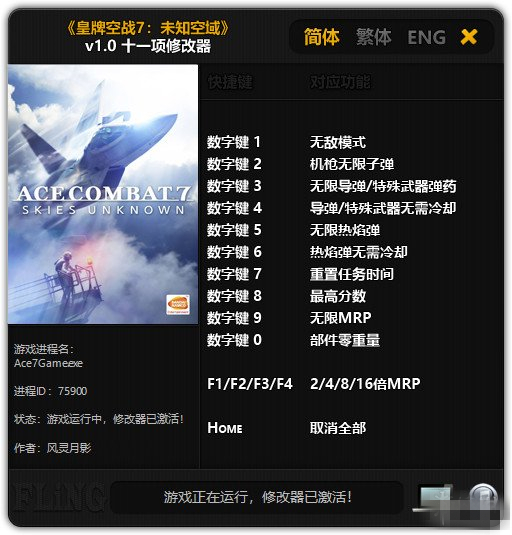 您的位置:起點(diǎn)軟件下載電腦軟件系統(tǒng)軟件皇牌空戰(zhàn)7未知空域十一項(xiàng)修改器 v1.0 風(fēng)靈月影版