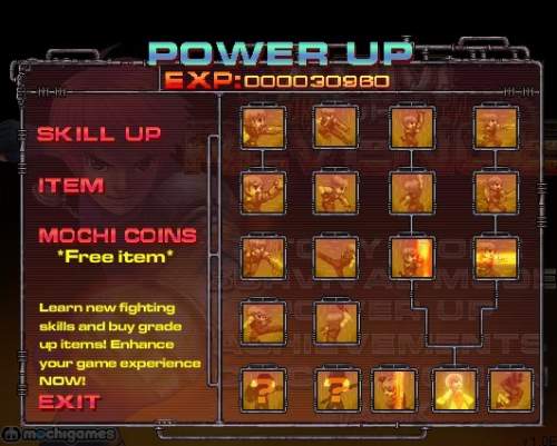 增加技能點(diǎn),增加拳頭(刀)攻擊力(3,4級(jí)得打通NORMAL難度才能升級(jí)),增加槍攻擊力和冷卻速度(4,5級(jí)得打通NORMAL難度才能升級(jí))