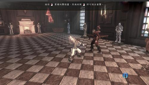 接下來是戰(zhàn)斗訓(xùn)練,到架子上拿上劍,使用左鍵攻擊,右鍵防守,按住左鍵蓄力攻擊,