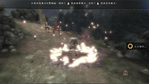 右鍵可以用火范圍攻擊,按住右鍵擴大范圍。到通道的盡頭處可以看到地上的標(biāo)記,站上去按右鍵傳送走。