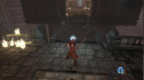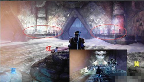 2.在上大樓梯之前右邊有個“迷離洞穴”,進入一路射機關(guān),點火盆開門,在一個大廳中央。
