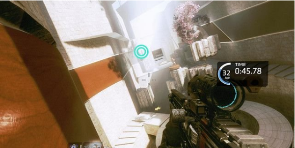 step5.開(kāi)始本次的練習(xí),首先就要在槍械庫(kù)當(dāng)中就要開(kāi)始飛檐走壁,建議選擇右側(cè)墻體開(kāi)始,那么進(jìn)入到第一個(gè)戰(zhàn)區(qū)時(shí)就可以跳到左側(cè)的墻上對(duì)下方的人偶進(jìn)行掃射。