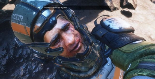 劇情:忽然模擬艙出現(xiàn)故障,IMC正在攻打Cooper所在的戰(zhàn)艦,戰(zhàn)艦已經(jīng)遭到嚴(yán)重?fù)p毀,Cooper連同其他步兵要搭乘逃生艙從大氣層開(kāi)始下墜至臺(tái)風(fēng)星上。