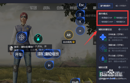 在這里沫沫建議游戲的操作模式選擇為智能模式,且分辨率要跟游戲設(shè)置的分辨率匹配相同,這樣一般情況下就不用再對(duì)按鍵做什么更改了。