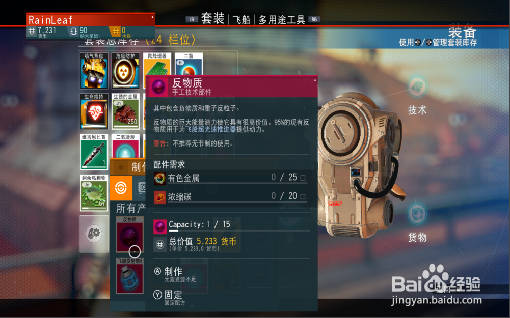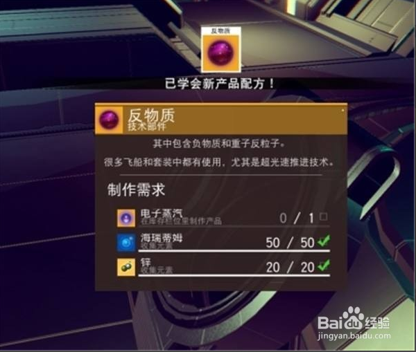 最后,我們就能在背包空欄出看到如何制作反物質(zhì)了。
