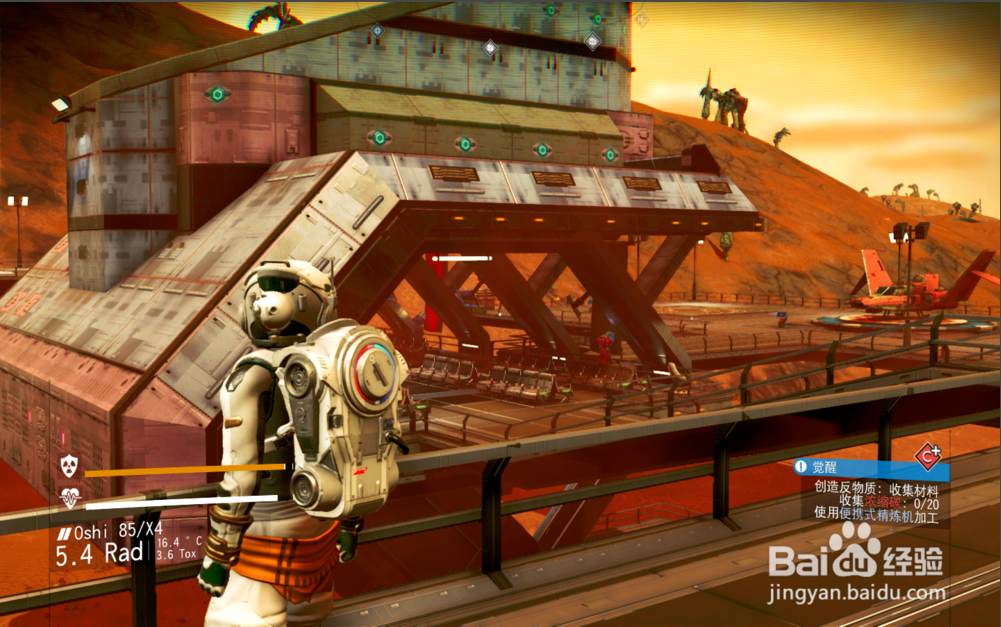 其實這里只要開飛船到太空中,你就會收到一條信息。掃描信息出處后,跟著標記會到一顆星球上的廢棄基地,在基地里即可獲得反物質(zhì)外殼的圖紙,然后免費送你個反物質(zhì)。