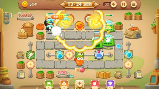 獲得更多的金幣后,在其他的空白地建造炮塔,多個炮塔才能保護(hù)好蘿卜