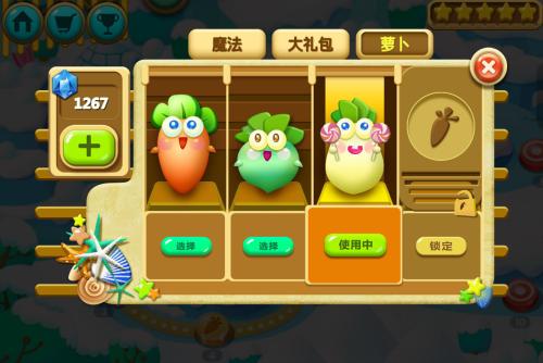 游戲中獨有的試衣間、蘿卜技能系統(tǒng),可以改變蘿卜形態(tài),增強蘿卜威力,讓玩家可以對蘿卜進(jìn)行變裝體驗,在保衛(wèi)蘿卜之余體驗到蘿卜養(yǎng)成的成就感。