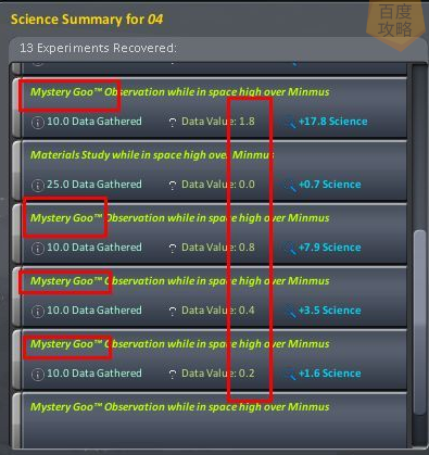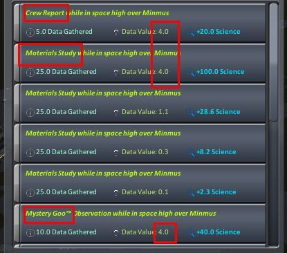 單枚火箭帶多個(gè)同種儀器也同樣會(huì)遞減,雖然在數(shù)據(jù)收集時(shí)顯示的都一樣,比如是25,但是在地面回收時(shí)得到的科技點(diǎn)會(huì)依次降低。因此如果是第一次探索同種儀器帶3到4個(gè)足以,個(gè)人感覺(jué)收集到的科技點(diǎn)低于0.7以后的意義就不大了(不過(guò)即使比例為0,小儀器依舊能收集0.3科技點(diǎn),大儀器為0.7)。注意圖中Data Value這個(gè)參數(shù)