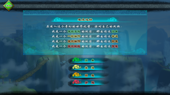 打開游戲,映入眼簾的背景就是這個游戲初期劇情的地點。龍劍的logo也完全符合仙俠的風格,游戲菜單也很簡約明了,四個選項都很清晰明確的表達出了應該有的含義,這一點我是完全贊成的。簡單的界面給玩家的體驗絕對比眼花繚亂的章程要好很多,玩家的重心應該是游戲本身,而不是UI的復雜程度。