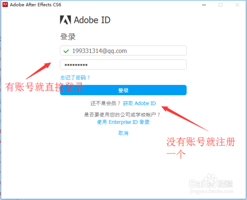 這里是需要我們登錄自己的adobeID賬號(hào),我們無需斷網(wǎng)安裝,直接在線安裝即可,如果你沒有adobeID賬號(hào),我們點(diǎn)擊“獲取adobeID”進(jìn)行注冊(cè)一個(gè)賬號(hào),然后再登錄即可,有賬號(hào)的直接登錄即可。