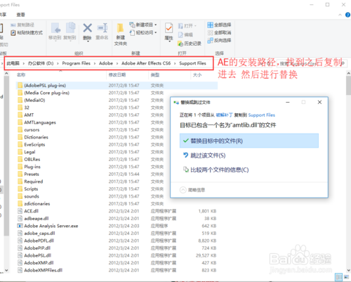 打開軟件的安裝路徑(安裝目錄),打開破解補(bǔ)丁文件,進(jìn)行解壓出來,把補(bǔ)丁直接復(fù)制到AE根目錄即可,即Support Files 文件夾下面。然后進(jìn)行選擇替換該文件。軟件這樣就破解好了,以后打開軟件就不會(huì)顯示試用30天了(建議用注冊(cè)機(jī)來破解,防止后續(xù)出問題)