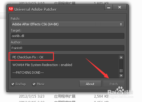 選擇好CS6之后,點(diǎn)擊patch 會(huì)有一個(gè)選項(xiàng),選擇“是”即可。