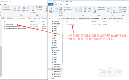 打開安裝包的漢化程序,選擇Support Files整個(gè)文件進(jìn)行復(fù)制,然后題解黏貼到AE的根目錄的Support Files文件進(jìn)行替換。復(fù)制過程中有很多文件需要替換,點(diǎn)擊替換即可。這樣軟件就可以進(jìn)行漢化了,再次打開軟件就是中文版本。