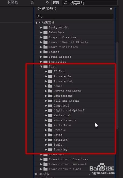 這些都是AE自帶的文字預(yù)設(shè)動(dòng)畫