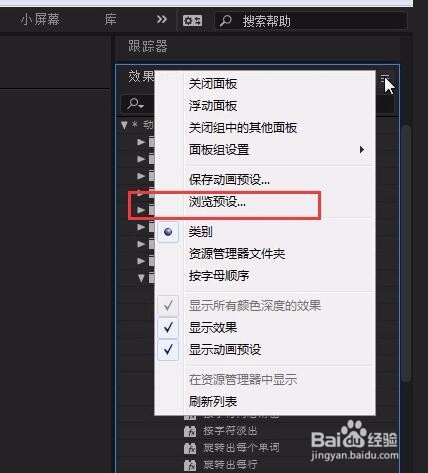 2、效果和預(yù)設(shè) 旁邊有三橫杠 點(diǎn)擊它 選擇-瀏覽預(yù)設(shè)