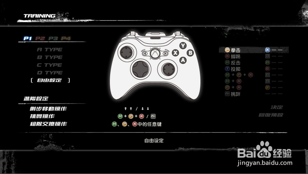 設(shè)置你的按鍵,先選中拳,然后按你想要的鍵就設(shè)置上了,比如我習(xí)慣hjkl分別是防拳重拳投,jkl我都可以用游戲設(shè)置達(dá)到目的,只有H沒(méi)法設(shè)置為防。那就借助軟件修改H這一個(gè)鍵即可。這里我把防御先設(shè)為M,選擇決定保存下設(shè)置。