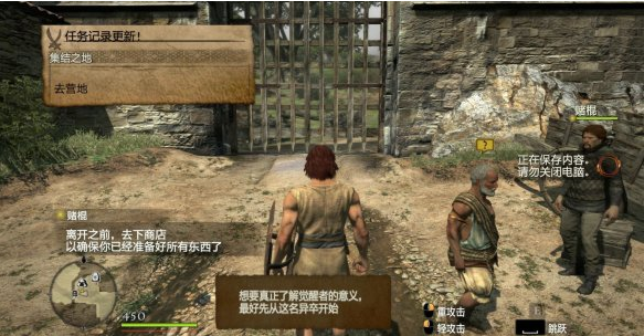 往前走一段就會看到巨龍,這邊操作提示會提醒我們按ALT來格擋,不過這邊沒有戰(zhàn)斗,迅速往前會遭遇雜魚一只,秒殺之。