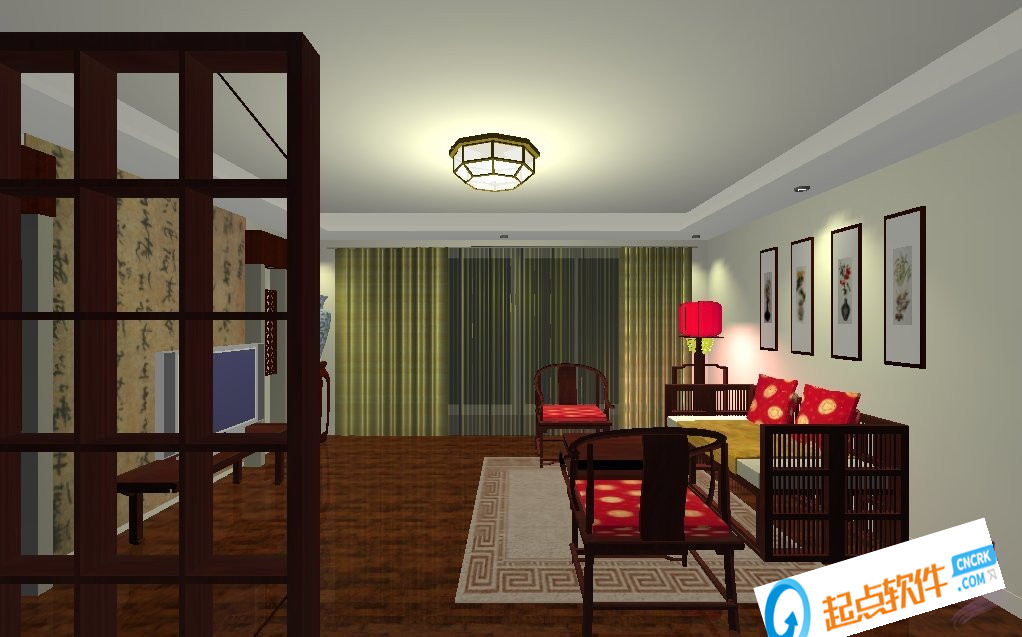 3、專業(yè)裝修設(shè)計:可設(shè)計吊頂、地臺、燈帶等各種裝修元素,平面繪制完成三維效果圖立即呈現(xiàn)。