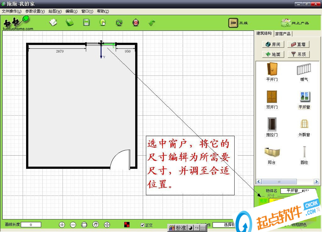 編輯窗戶的尺寸為: 寬1500 長110 高2200 標(biāo)高250