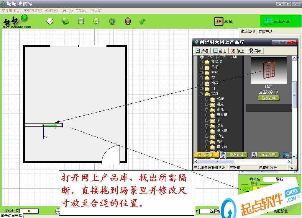 12、大量3D樣板方案和產(chǎn)品圖庫:提供本地和網(wǎng)上兩種方式的3D樣板房和產(chǎn)品模型及材料庫, 用戶也可以錄入自己的樣板方案和家居產(chǎn)品到本地。