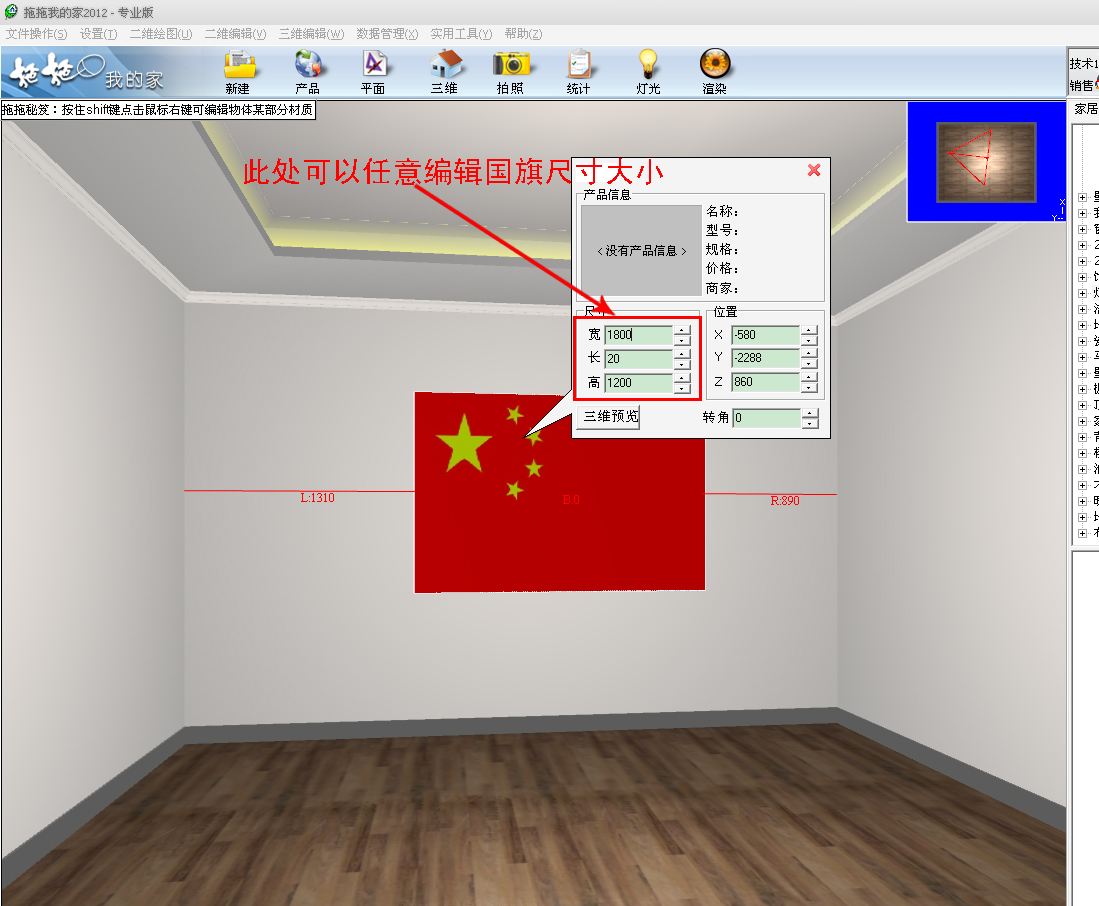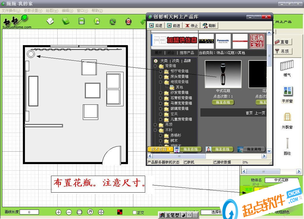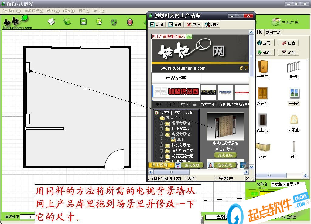 布置背景墻:從網(wǎng)上產(chǎn)品庫拖下后編輯尺寸 寬3200 長200 高2800