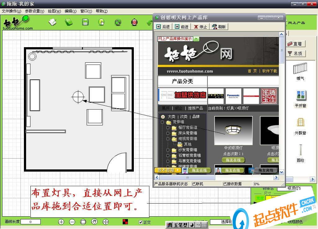 布置吸頂燈,直接選好拖到需要的位置即可。