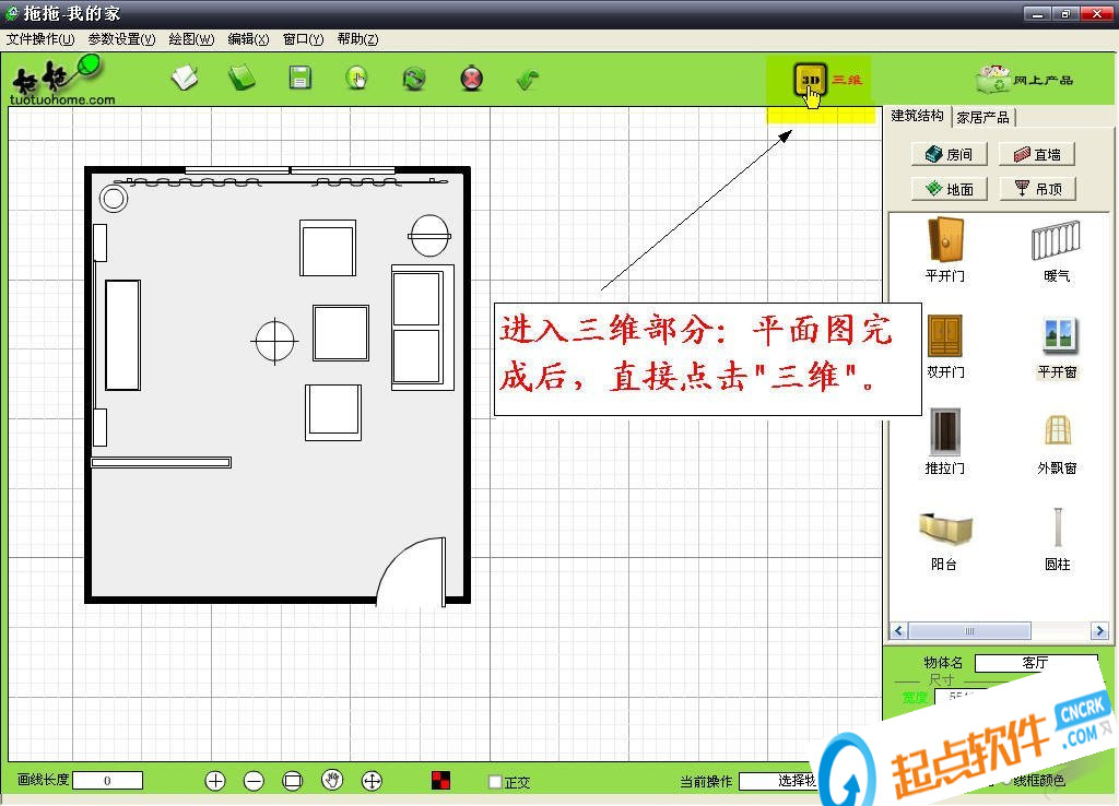 運行軟件后,點擊“從零開始”。用房間的功能繪制戶型。
