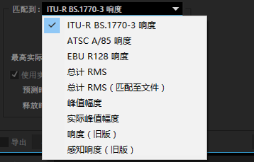 5、從“匹配到”下拉列表中,選擇您所在區(qū)域的響度標(biāo)準(zhǔn)。