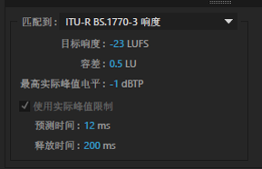 4、單擊“匹配響度設(shè)置”展開(kāi)響度參數(shù)組。