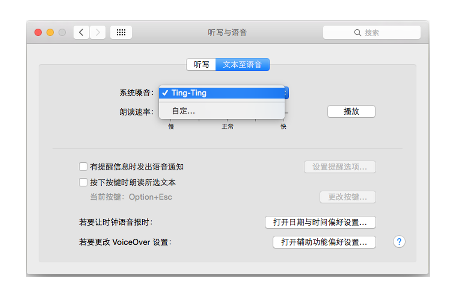 3、macOS:在對(duì)話(huà)框中,單擊“設(shè)置”。選擇“系統(tǒng)聲音”>“自定義”。您可以直接從 Apple 安裝聲音和語(yǔ)言。