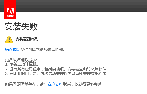 安裝過(guò)程彈出安裝失敗的提示: