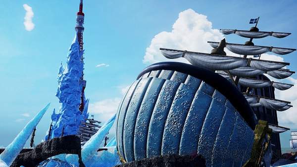 馬林梵多島海軍本部作戰(zhàn)的舞臺。環(huán)顧四周,可以看到《海賊王》中出現(xiàn)的“白胡子海賊團”的船“莫比·迪克號”和被冰封的東京塔。