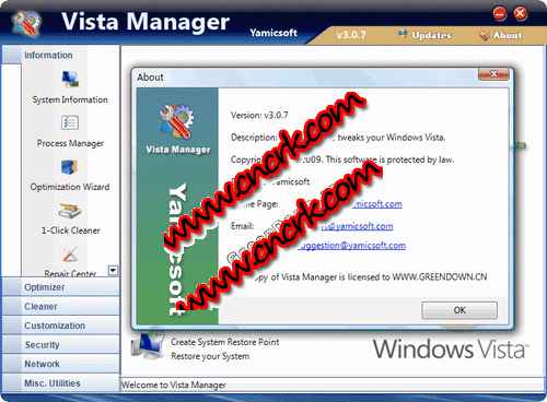 Yamicsoft Vista Manager V4.1.5 64Bit 英文官方安裝版 vista manager 是一個(gè)系統(tǒng)工具,它可以幫助你對系統(tǒng)進(jìn)行優(yōu)化調(diào)節(jié),整理windows vista. 它可以增加系統(tǒng)運(yùn)行速度,提高系統(tǒng)安全