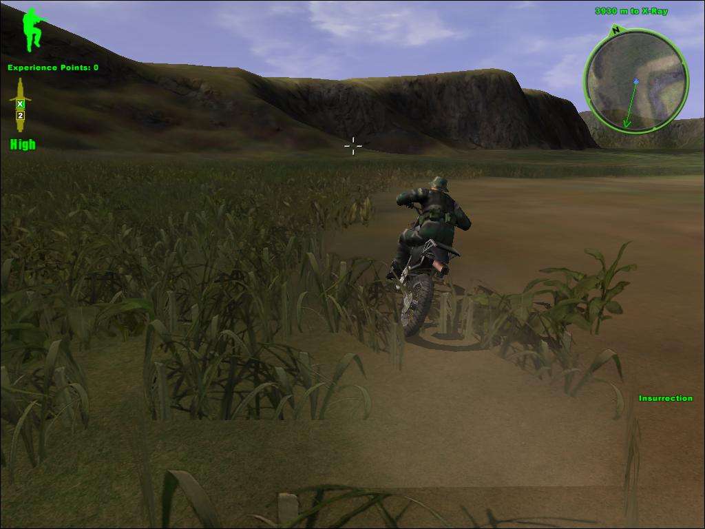 農田村莊戰(zhàn)。乘坐隊友的車子沖向敵基地,主角負責控制炮火,路上小兵盡量殺,碰到吉普要打掉,否則對方會干掉你。到達目的地后,隊友向前沖,主角最好殿后,清掃后方的敵援軍。清掃好了,隊友在前面也打完了,穿過一片罌粟地,路上清理掉兩邊房子,進入村莊,把2間房子里的毒品箱用槍打爆。最后向直升機接送點沖去,把接送點的敵人清掉。本關主要是炮火不好控制,槍支可以隨意,難度2星。
