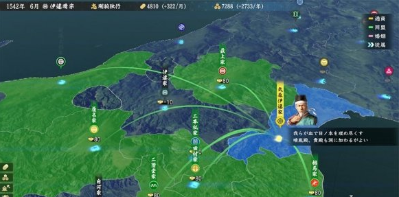另外,在征伐九州之后,義弘代替島津義久繼承了家督,福島正則、加藤清正等和秀吉有血緣關(guān)系的武將也被授予了領(lǐng)地。西國(guó)的大名雖然互相被同盟關(guān)系所束縛,但是趁隙擴(kuò)大領(lǐng)地,最后反旗推翻秀吉也是更能展現(xiàn)亂世場(chǎng)面。在史實(shí)情節(jié)中,歷經(jīng)曲折支持秀吉的伊達(dá)政宗也是備受矚目。