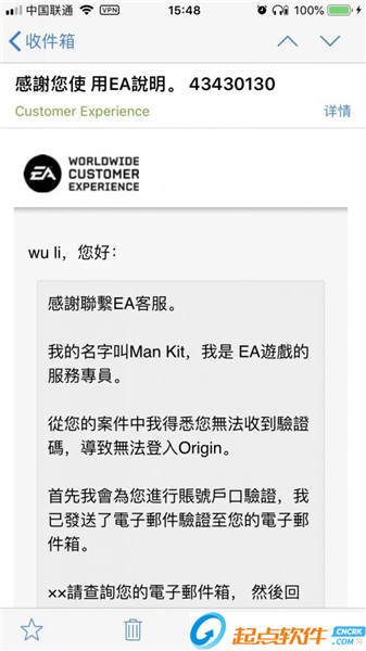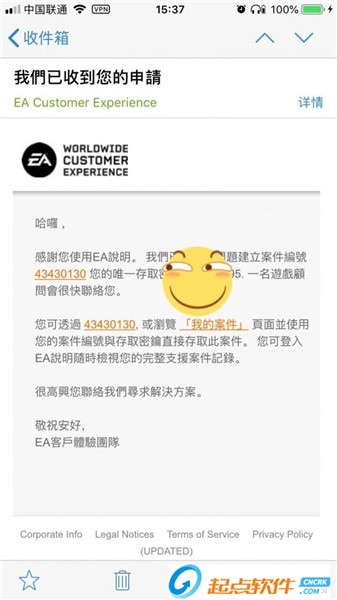 等一段時(shí)間以后會(huì)收到客服的郵件和EA發(fā)來的安全代碼,直接把代碼用郵件回復(fù)給客服不要發(fā)給EA。也可以進(jìn)入案例里面點(diǎn)繼續(xù)把代碼回復(fù)給客服過幾分鐘以后應(yīng)該就解除登陸驗(yàn)證了。