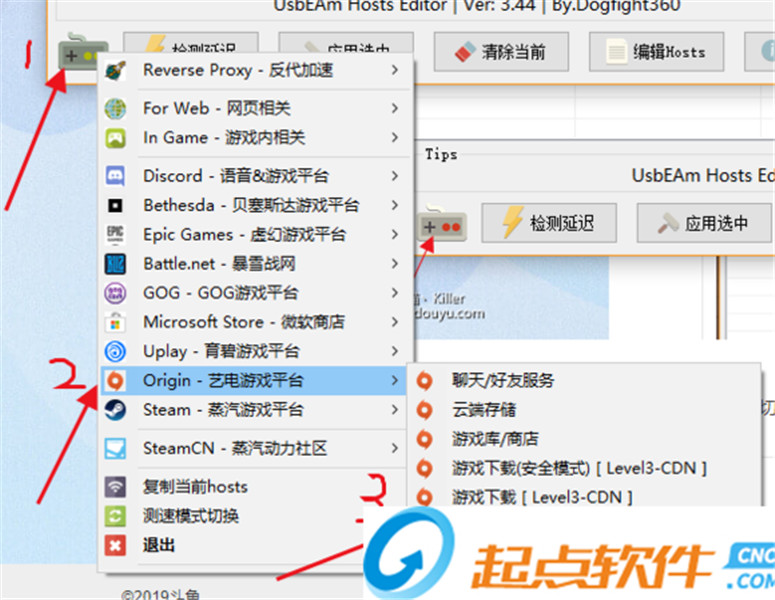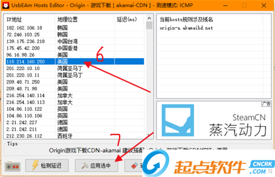第二步!將這兩個(gè)壓縮包解壓到桌面,把Origin橘子平臺(tái)打開后,再點(diǎn)開Origin_CDN切換,然后點(diǎn)應(yīng)用(默認(rèn)推薦是這個(gè)Akamai不用亂點(diǎn))。