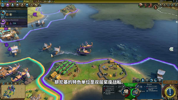 在游戲伊始便解鎖“著作”科技尤里卡。與首都位于同一大陸、且由腓尼基所建造的海岸城市固定為絕對(duì)忠誠(chéng)。開(kāi)拓者上船后擁有額外移動(dòng)力和視野范圍,上下船不會(huì)消耗額外的移動(dòng)力。