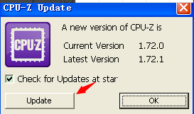 運(yùn)行后彈出cpu-z update的小窗口,這里我們點(diǎn)擊窗口下的update即可。