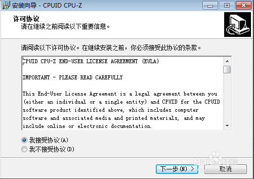 我們從百度軟件下載的cpu-z程序不是綠色程序,需要我們安裝一下