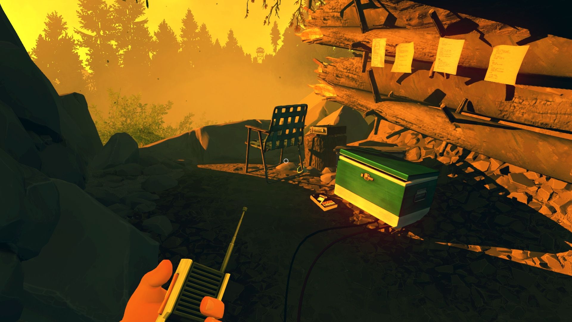 回去的途中還有一場小風波,Deliah告訴亨利瞭望塔此時有人。迅速返回瞭望塔后,發(fā)現(xiàn)入侵者已經(jīng)離去,但是在門上留下了一盒磁帶,里面就是Deliah與亨利商量要不要燒毀營地的錄音,兩人果然被設計陷害。