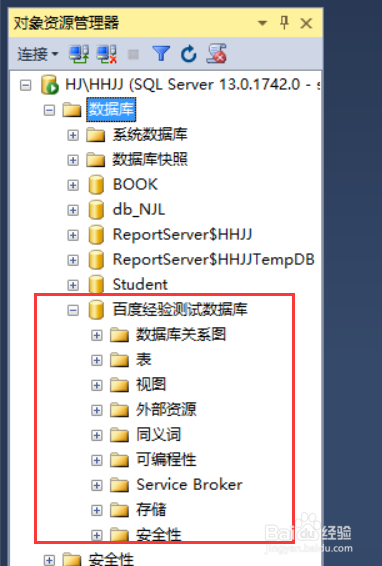 在左邊的 對象資源管理器那 小編用紅色的圈圈圈住的地方就是新建的數(shù)據(jù)庫