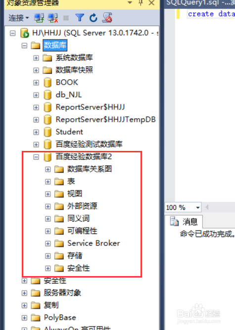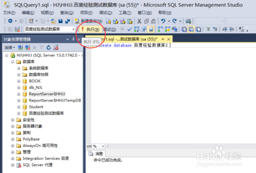 輸入代碼 create database 百度經(jīng)驗數(shù)據(jù)庫2; 最后這個是名字 ,然后點擊執(zhí)行