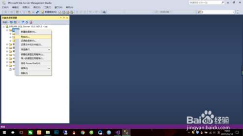 打開SQL server2016,選擇數(shù)據(jù)庫->附加