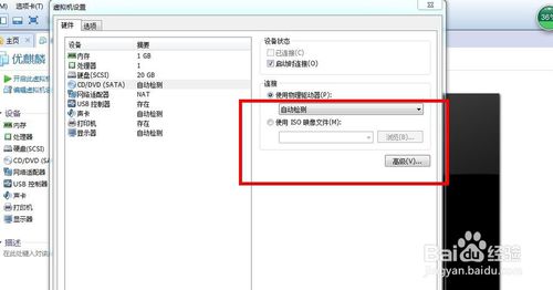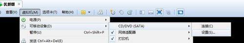 8.把鼠標(biāo)光標(biāo)移到屏幕上方,在圖示選項(xiàng)(虛擬機(jī)->可移動(dòng)設(shè)備->CD/DVD)中,進(jìn)入光驅(qū)的設(shè)置,我們直接改回原來(lái)的“使用物理驅(qū)動(dòng)器”就可以了,點(diǎn)確定。