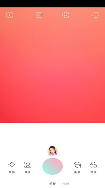 1.輕顏相機(jī)錄制視頻的界面和拍攝照片的界面是同一個(gè)地方,手機(jī)中打開輕顏相機(jī)后,手持手機(jī)對(duì)準(zhǔn)被拍攝對(duì)象后,點(diǎn)擊底部的錄制/拍攝按鈕